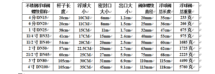 (2)不銹鋼浮球閥在杠長度大小、球直徑大小根據浮球壓力大小而決定。