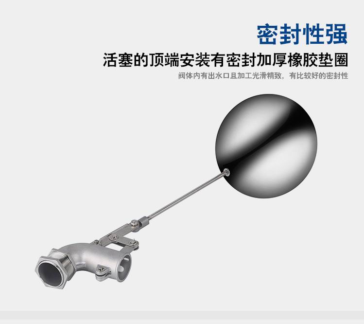 當水塔內水面下降時,浮球下落,利用水管內水的壓力,將閥體里的密封硅膠柱塞打開,閥體開啟供水,當水塔水位上升時,浮球上浮,連桿帶動柱塞,硅膠體密封進水孔,閥體停止供水.