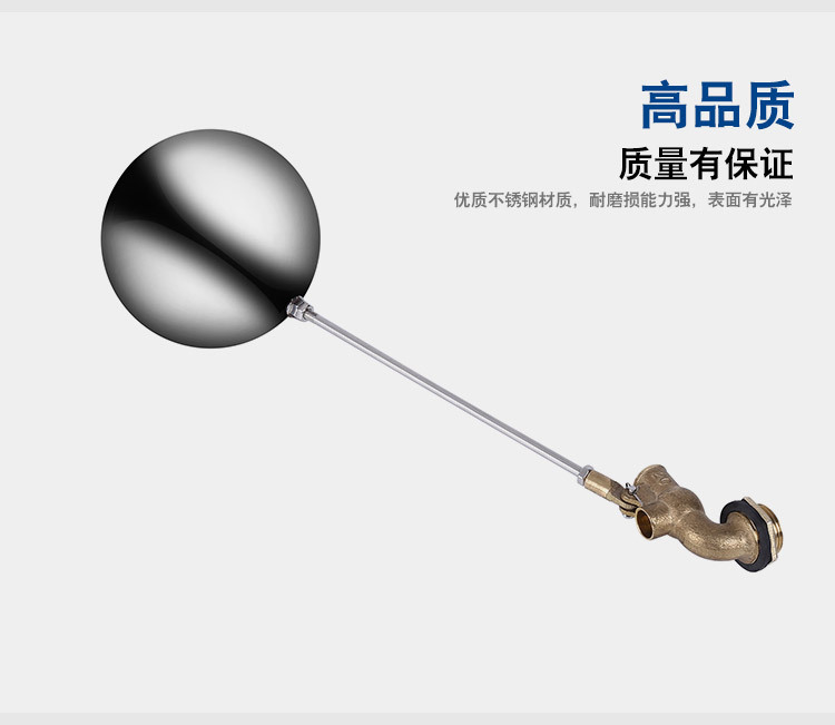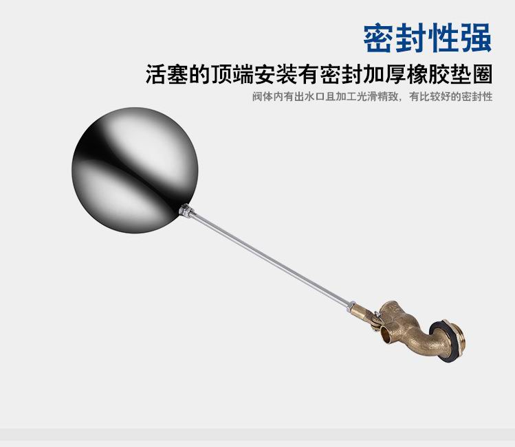當水塔內水面下降時,浮球下落,利用水管內水的壓力,將閥體里的密封硅膠柱塞打開,閥體開啟供水,當水塔水位上升時,浮球上浮,連桿帶動柱塞,硅膠體密封進水孔,閥體停止供水.
