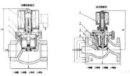 常開電磁閥,線圈通電后,銜鐵在磁力作用下下移,推動副閥閥塞下移,直到和副閥座壓緊,副閥關(guān)閉,由于主閥閥杯上下壓差趨于相等,主閥閥杯由磁力和自重壓緊緊密封面,閥門關(guān)閉。線圈斷電,磁力為零,銜鐵和副閥閥塞由彈簧作用上升,副閥打開,主閥閥杯內(nèi)介質(zhì)經(jīng)副閥流走,壓力下降,主閥閥杯由下下壓差作用向上升起,主閥打開,閥門開啟。