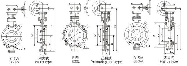 本產品815、830系列蝶閥的主要結構特征為對夾式和法蘭式三偏心結構,而815、830L系列蝶閥的主要結構特征為閥體周邊帶凸耳且設計成帶螺孔單法蘭結構。815、830系列蝶閥廣泛應用于石油、化工及工業環保水處理、高層建筑、給排水等管道上。其特點為:由于采用的是三偏心結構,密閉性能可靠,確保開啟時蝶板不接觸密封座,消除了密封座不均勻負載,延長了使用壽命、確保可靠的密封性能,具有耐高溫、耐磨損、耐腐蝕等優點。
